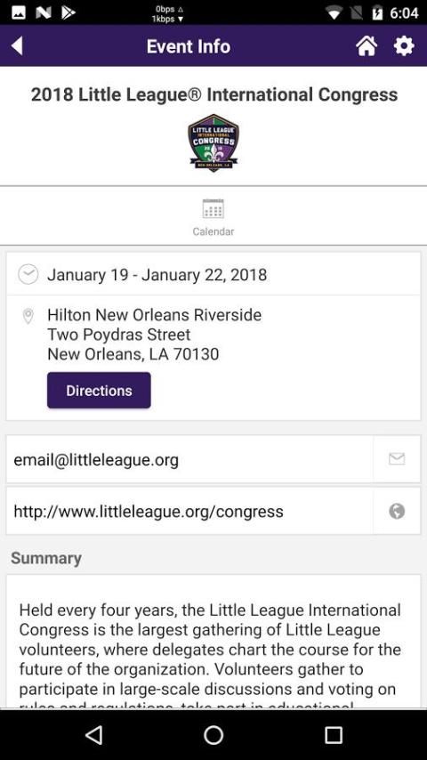 27 Sedikit League® Internasional Kongres akan diselenggarakan di Hilton New Orleans Riverside di New Orleans, La, pada 19-22 Januari, 2018. The Little League® Internasional Kongres aplikasi mobile akan memberikan pengguna dengan akses ke:. Jadwal rinci peristiwa dan informasi terkait, link langsung ke website resmi untuk Kongres Internasional 2018 Little League, daftar komprehensif sesi pelatihan dan pendidikan yang diselenggarakan oleh anggota staf profesional Little League, profil dari pembicara tamu diharapkan untuk hadir, daftar dari peserta pameran di lokasi, up-to-pemberitahuan menit, informasi hotel untuk membuat Anda tetap lebih menyenangkan, alat penjadwalan pribadi untuk membantu mengorganisir Anda pengalaman Kongres, satu sentuhan akses ke update Kongres dan feed berita, serta bermacam-macam Hotel dan informasi wisata, termasuk rincian tentang transportasi ke dan dari, Hilton New Orleans Riverside. Tujuan dari Kongres Internasional, pertama kali diluncurkan pada tahun 1956, adalah untuk memetakan perjalanan dunia bisbol dan softball program pemuda terorganisir terbesar. Lebih dari seribu relawan Little League dari seluruh dunia menghadiri Little League International Congress, yang diselenggarakan setiap empat tahun sekali. Hampir 450 orang yang menghadiri relawan Administrator Distrik, atau delegasi, yang berfungsi sebagai penghubung antara liga lokal dan Little League International. Bupati dipilih oleh liga konstituen mereka untuk memberikan dukungan, dan untuk mewakili kepentingan mereka sebagai delegasi ke Kongres Internasional. Tujuan utama dari Kongres adalah untuk mengubah aturan dan peraturan. Para delegasi, dan administrator distrik asisten mereka, bertemu dalam diskusi meja bundar, membuat perubahan yang diperlukan dalam amandemen yang diusulkan, maka suara pada perubahan pada hari terakhir Kongres. Sebuah suara dua-pertiga diperlukan untuk bagian. Mereka amandemen menerima suara yang diperlukan kemudian dipresentasikan kepada Dewan Direktur International untuk persetujuan akhir. Baru 2018 Kongres, Little League Internasional akan membawa pelatihan baru Administrator Distrik tahunan ke New Orleans, menyediakan D.A.s yang baru terpilih atau ditunjuk dengan sesi pelatihan khusus. Biasanya diadakan pada musim gugur di Williamsport, Pa., Pelatihan membantu menguraikan peran D.A. yang