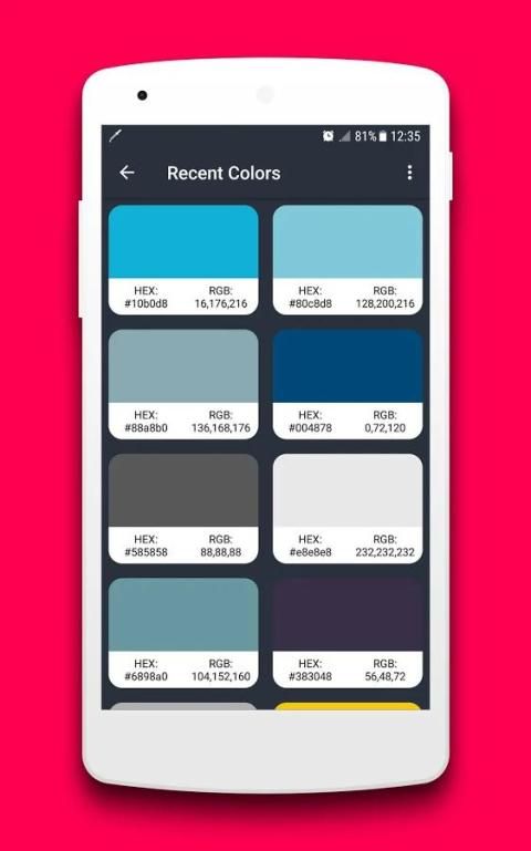▶ Hanya klien pada shortcut pemberitahuan dan akan mengambil screenshot dari layar Anda saat ini dan ekstrak semua kode warna dari layar.