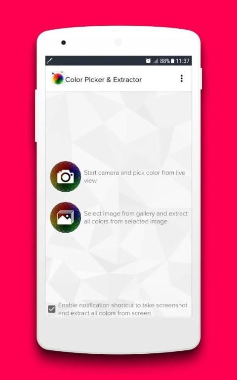 ▶ App memiliki satu shortcut untuk mengambil screenshot dan ekstrak warna dari layar yang Anda lihat.