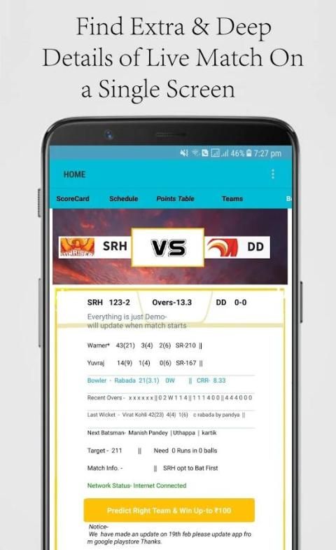 Cari hidup rincian kriket pertandingan Anda pada satu layar dengan skor memperbarui cepat,