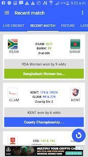 Recent Matches – This app display recent matches with Series Name, Date, Venue and full cricket scorecard updates.