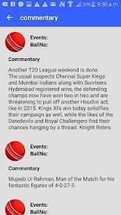 Hidup Cricket Score rincian App layar hidup skor dengan: -