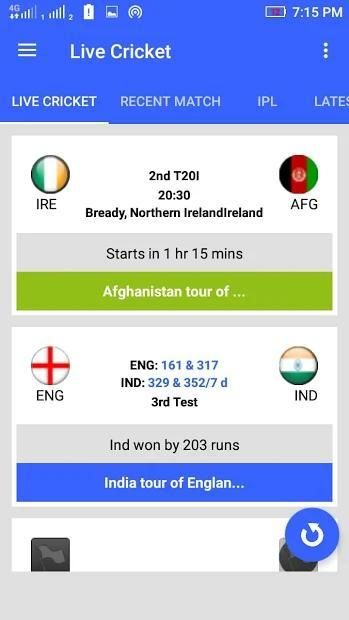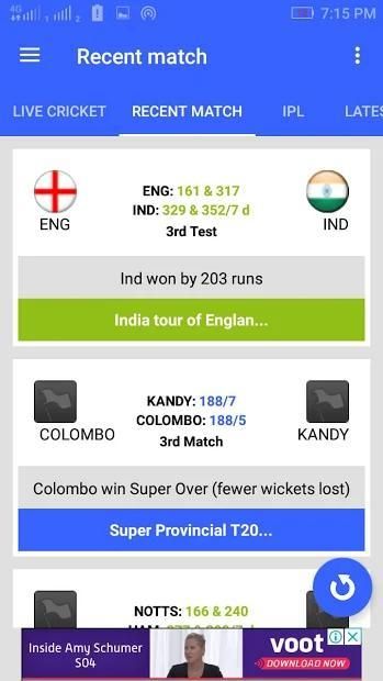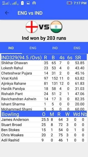 Live Score App is especially designed to cater fans like you who bleeds cricket. You can see live updates from your most favorite cricketers like Mahendra Singh Dhoni, Virat Kohli, Yuvraj Singh, AB De Villers and many more.