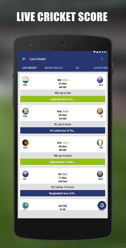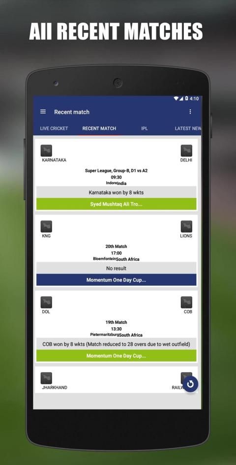 This is the best app for live cricket scores, and gives you a unique and unmatched experience of following cricket on your Android phone.With comprehensive live coverage of all international matches, Domestic and T20 leagues (IPL, CLT20, Big Bash, CPL, BPL etc..) you will never miss out on anything that happens on the cricket field.