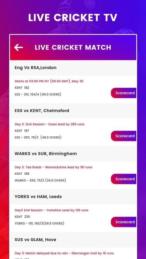 Tonton Siaran Langsung skor kriket, pertandingan terakhir, papan skor, berita, dll.