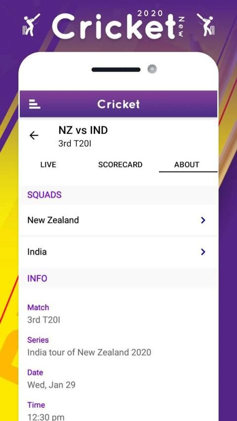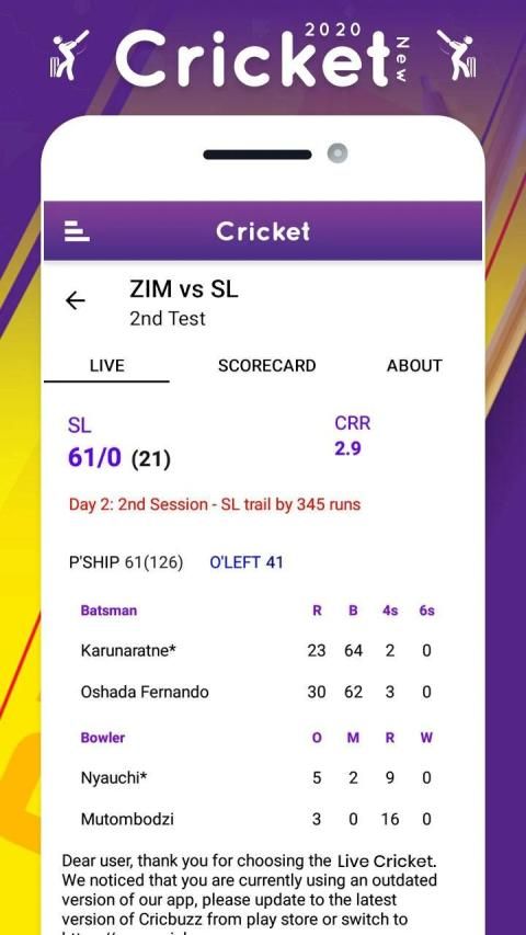 Aplikasi Live Cricket ringan, dan memberikan informasi yang akurat dengan kerangka kerja yang baik