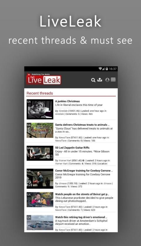 Liveleak adalah situs web berbagi video yang memungkinkan pengguna memposting dan berbagi video, dan merupakan aplikasi yang membuat Anda selalu terbarui dengan konten blog video terbaru.