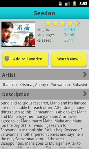 Watch your Favorite high quality Tamil Movies Now.. Free..This application will play your Favorite High Quality Tamil Movies in your Android Mobile..Watch all your Favorite FULL LENGTH High Quality Tamil Movies on your mobile for Free DOWNLOAD NOW.Note: New movies to be added frequently, look out for frequent updates App requires 2G3GWiFi connection to Watch live Movies.Disclaimer: The content provided in this app is hosted by YouTube and is available in public domain. We do not upload any movies to YouTube. This app is just an organised way to browse and view these YouTube Videos.