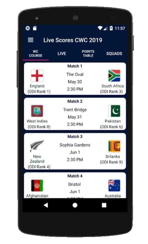 Kami akan membawakan Anda liputan langsung piala dunia kriket 2019 melalui aplikasi ini. Kami akan membawakan Anda skor langsung, komentar bola demi bola, lineup, detail & statistik tim dan pemain semua melalui aplikasi tunggal ini.