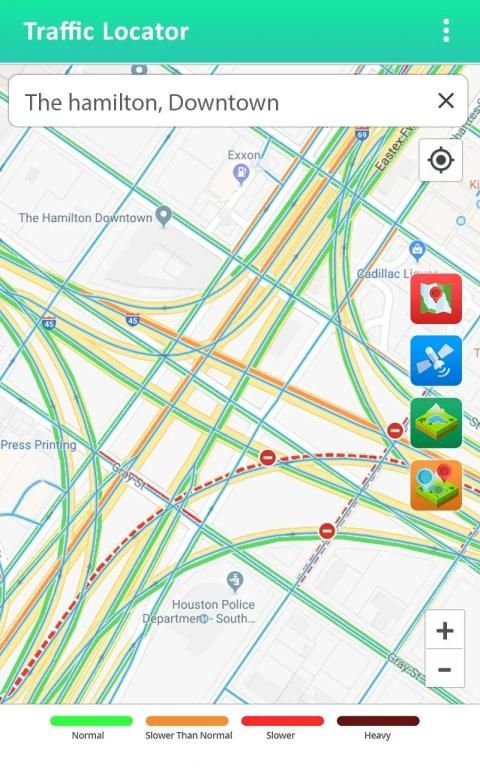 Maps range from satellite maps to street view as well as Traffic maps are available: