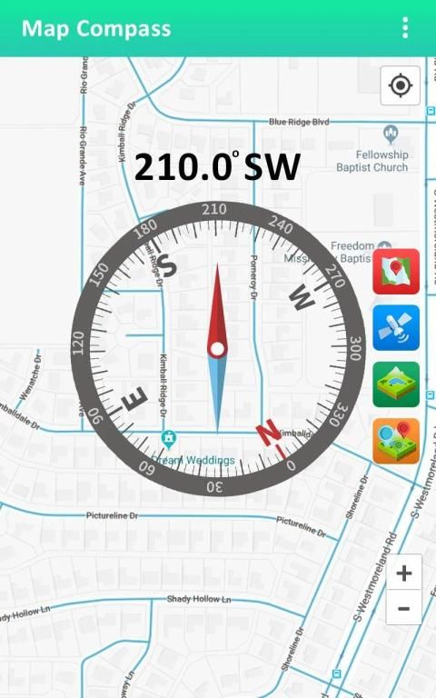 Presisi tinggi dan kompas digital yang indah. Kompas ini mendukung penghitungan utara utara dan utara benar menggunakan koordinat lokasi jaringan atau GPS, yang dapat dilihat di peta.