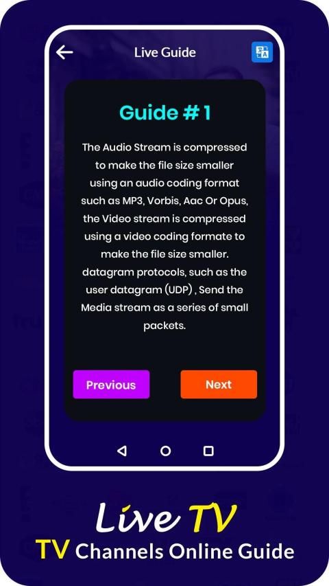 Panduan Saluran TV Langsung Seperti menonton TV di internet, Anda dapat melihatnya di ponsel ketika waktu yang diharapkan sudah habis. Dengan saluran TV langsung internet yang baru, Anda dapat memiliki Panduan Langsung Semua Saluran TV Gratis secara Langsung di ponsel Anda saluran kabel gratis melalui internet tanpa harus meninggalkan TV untuk merekam program yang ingin Anda tonton.