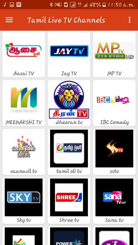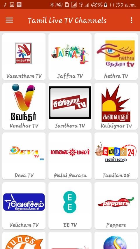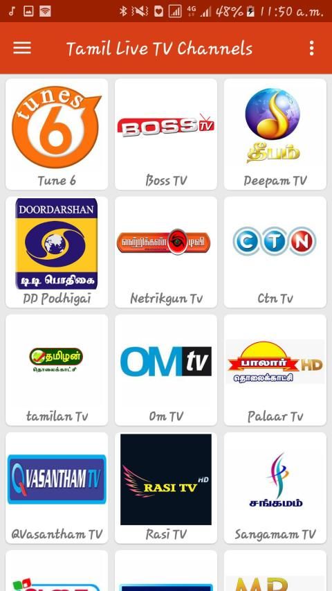 Aplikasi kami mencakup saluran tv langsung Tamil berkualitas tinggi