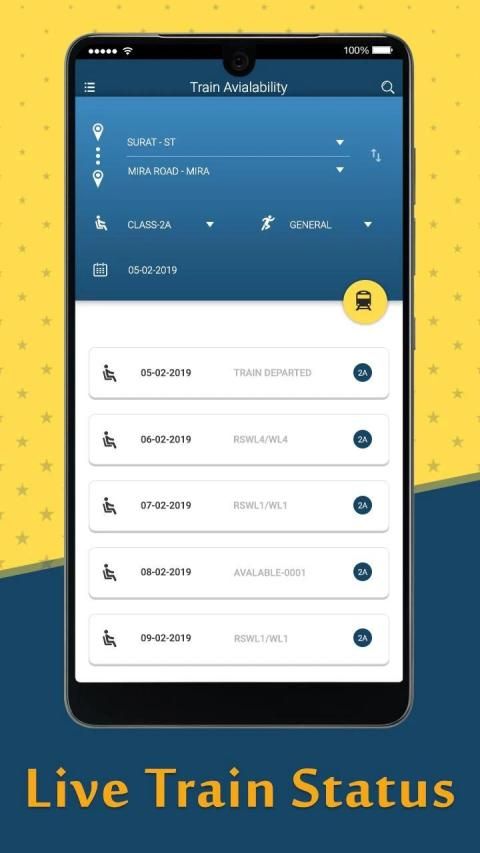 Status Live Train adalah aplikasi Tercepat, paling sederhana dan sangat ringan untuk menemukan setiap informasi yang diperlukan tentang Indian Railways dengan antarmuka asli yang keren. Anda bisa mendapatkan status kereta mengenai keterlambatan saat ini dan posisi pada titik waktu mana pun saat dalam atau sebelum perjalanan plus Anda bisa mendapatkan info seperti ketersediaan dan jadwal.