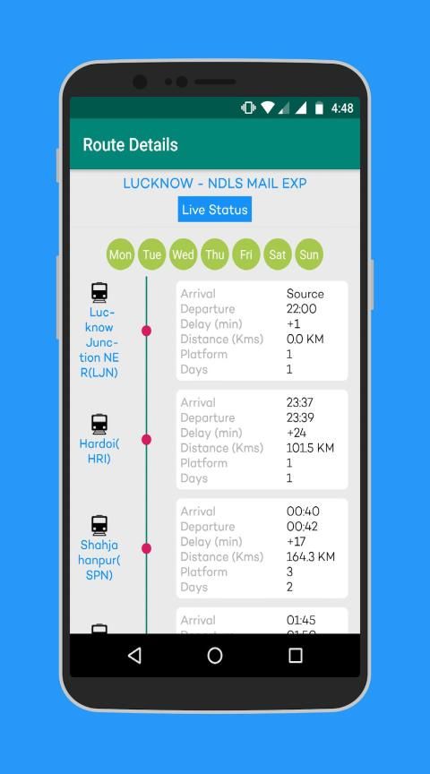 Live Train Status is the Fastest, simplest and a very light application to find every necessary information about Indian Railways with cool native interface. You can get the train status regarding current delays and position at any point of time while in or before journey plus you can get info like availability and schedule.