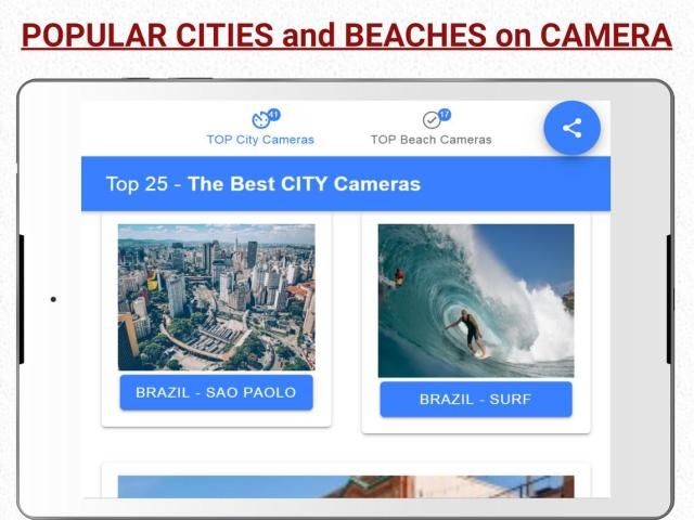 Menggunakan aplikasi Anda hampir dapat menjelajahi seluruh dunia dalam beberapa menit dengan duduk di rumah dengan live streaming kamera bumi. Dengan setiap pembaruan, kamera baru dan lebih baik dari semua kota yang tersedia akan ditambahkan. Jangan lupa untuk memperbarui aplikasi