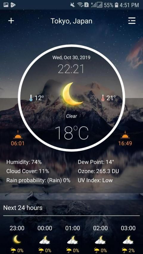 - Change unit setting: Temperature (C/F), Time format (12h/24h), Precipitation (mm, inch), wind speed (km/h, mi/h, m/s), pressure (mmhg, hPa, mbar)