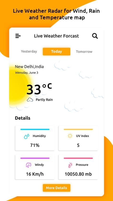 We focus to give accurate data with proper prediction so we add this feature here you will get prediction of weather like you rain is or how temperature behave.