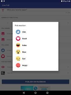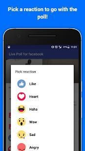 Aplikasi ini akan membantu Anda membuat jajak pendapat berdasarkan reaksi. Hanya memilih gambar apapun dan link ke reaksi apapun untuk menghasilkan gambar atau video ke posting atau streaming ke Facebook!