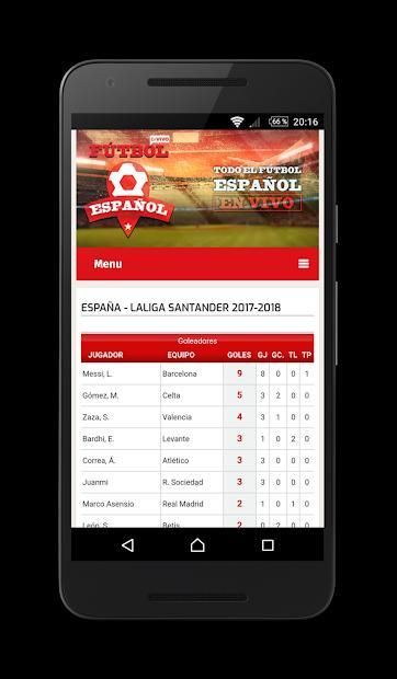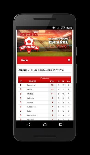 Dengan Spanish Live Soccer, Anda dapat menikmati yang terbaik dari sepak bola Spanyol dari kenyamanan ponsel pintar atau tablet Anda, apakah mereka sesuai dengan LaLiga Santander dan LaLiga 123, serta Copa del Rey dan pertandingan internasional untuk menikmati yang terbaik dari sepak bola Spanyol tim. Opsi yang lebih unggul daripada yang lain yang menawarkan layanan serupa seperti merah langsung.