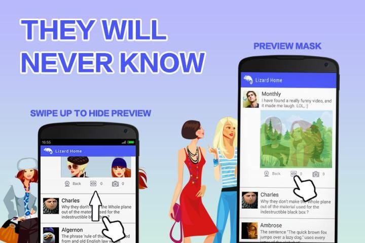 . The camera preview will fake itself as a normal video in the news feed(with a lot of funny jokes!). Everyone thinks you are reading news feed as usual? Haha, No! You are already taking secret pictures! Now take it and begin to explore!