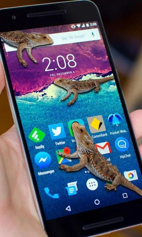 Fitur utama dari "kadal di layar ponsel lelucon lucu":
