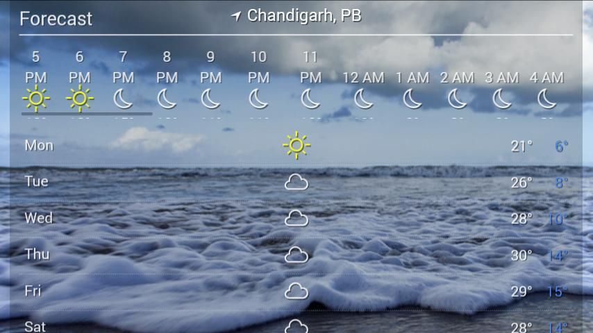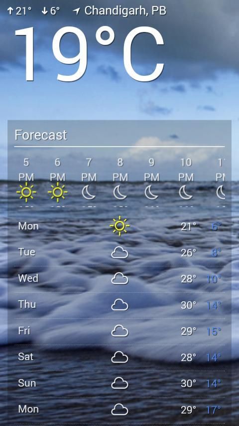Aplikasi ini menggunakan Prakiraan Cuaca sebagai saluran data dan pembaruan hidup yang gerakan menggesek sederhana. Selain itu Anda mendapatkan minimum dan suhu maksimum hari dan cuaca perkiraan hari mendatang.