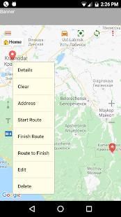 The location tracker also allows you to sit at home in a comfortable armchair, route routes and record them in the phone's memory. Convenient before the trip in advance to note interesting places, to lay routes: automobile, bicycle or pedestrian, and to estimate distance and time.