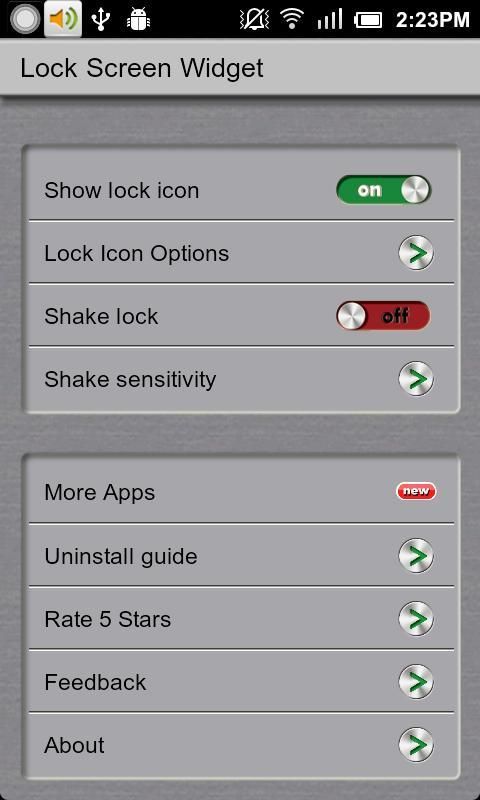 Matikan layar Anda dengan hanya satu sentuhan! Atau hanya mematikan layar Anda dengan menggoyangkan ponsel Anda! Lock Screen adalah salah satu alat layar kunci paling populer. Ini menyediakan widget layar kunci dan kunci layar icon shortcut bagi pengguna untuk mengunci dan mematikan layar mereka hanya dengan satu tap pada layar. Anda bahkan dapat mengunci ponsel Anda hanya dengan menggoyangkan ponsel Anda! Anda tidak perlu khawatir tombol daya Anda mogok karena Anda dapat menggunakan aplikasi ini untuk melakukan pekerjaan yang sama! Versi baru menambahkan opsi hide icon kunci, sekarang Anda dapat memiliki ikon kunci tak terlihat pada desktop Anda, sehingga Anda dapat mengunci layar Anda dan memiliki desktop yang bersih!