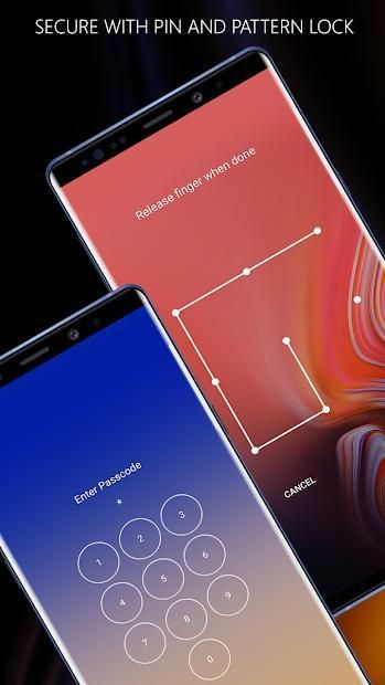 LockScreen Galaxy Note 9 Tema Tema Aplikasi ini dan akses dari layar kunci itu sendiri. Jaga juga aplikasi Anda dengan kata sandi atau kunci pola untuk mencegah orang lain menggunakan perangkat seluler Anda