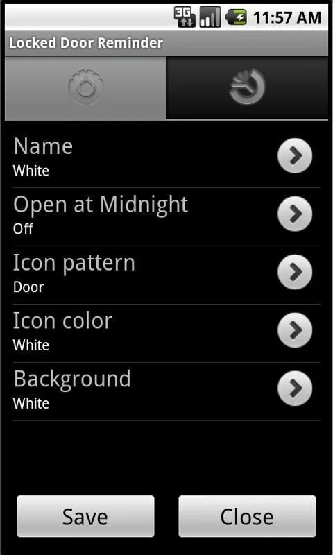 By tapping the name of the icon, the configuration screen opens. On the left tab, you can change your settings, on the right tab there is a report. It shows the time of closures.