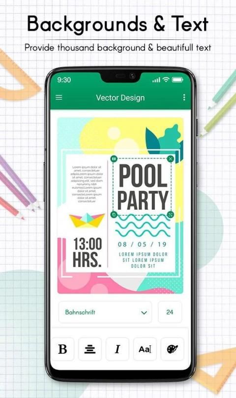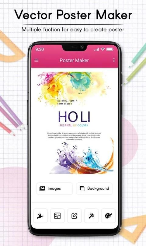 app specifically for designing posters, banner, flyer and cards easily. With one click, you can select sizing that's perfectly scaled for your poster, so you don't have to hassle with resizing an image.