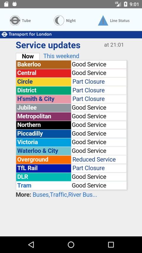 Switch between modes to check daytime route, nighttime route and live status updates.