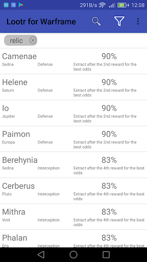 Ketika Anda menambahkan item, ia melihat semua rotasi dari semua misi. Kemudian menghitung peluang untuk mendapatkan item itu untuk setiap rotasi. Kemudian mengambil rata-rata semua rotasi untuk misi dan angka itu adalah "peluang misi utama". Namun beberapa misi memiliki kesempatan yang lebih baik ketika Anda mengekstrak sebelumnya. Misalnya IO memiliki peluang tinggi untuk mendapatkan relik pada rotasi a tetapi lebih rendah pada rotasi B dan C. Aplikasi ini akan mempertimbangkan ini dan hanya menghitung "peluang drop misi utama" seolah-olah Anda mengekstraksi setelah rotasi A. Ini juga akan memberi tahu Anda setelah hadiah untuk mengekstrak untuk mendapatkan peluang drop terbaik.