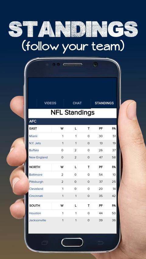 Here you have the breaking news from local and national sources, latest news notifications and standings of all NFL teams. All this in the most cleaner and light app to you stay tuned in your favorite sport anywhere.