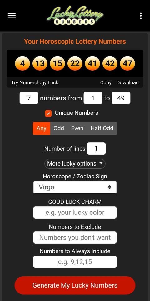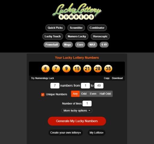 Lucky Lottery Number Generator app by LotteryNumberGenerator.net