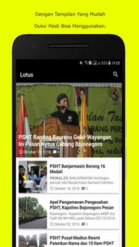 Aplikasi informasi PSHT dari seluruh Regional cabang di indonesia, kami sadar bahwa Hoax mudah sekali masuk ke PSHT yang mengadu domba antara keluarga besar PSHT. Dengan Lotus, Update informasi PSHT Lebih akurat, Aplikasi ini bukan berisi materi tentang ilmu yang diajarkan di PSHT, namun hanya update dari PSHT Seluruh Dunia