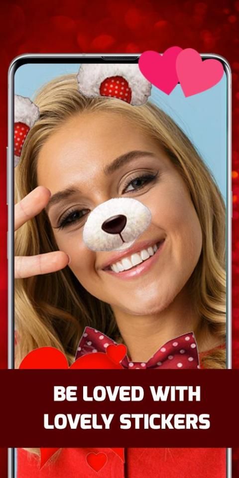 Ini adalah berita bagus untuk pecinta, untuk pertama kalinya orang-orang romantis akan diizinkan menunjukkan lebih banyak cinta dan kelembutan dalam gambar dengan aplikasi kamera selfie cinta terbaru dengan yang cantik ini Anda dapat menyebarkan cinta kapan saja dan di mana saja Anda berada dan memberi Anda kesempatan untuk menghasilkan foto-foto Anda dengan koleksi besar stiker manis seperti: stiker Crown & Bunga mahkota, stiker wajah anjing dan kucing lucu, stiker kamera kelinci yang imut, stiker unicorn yang menawan, memiliki hak untuk mendapatkan akses ke banyak stiker lain dengan stiker hewan peliharaan kamera yang luar biasa, apalagi dengan kamera cinta kamera stiker terlihat super kawaii dengan stiker gaya rambut yang berbeda kacamata hitam bergaya yang dapat membuat Anda terlihat dan merasa seperti seorang ratu super dan terutama untuk pecinta kami menawarkan mereka untuk mempercantik gambar dengan stiker artistik dari hari St. valentine yang .