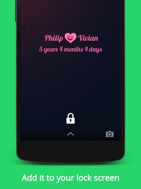 Menambahkan widget ke homescreen Anda tahu persis berapa tahun, bulan, minggu dan hari sejak hari istimewa dalam hubungan Anda: kencan pertama Anda, ciuman pertama Anda, hari pernikahan Anda ...