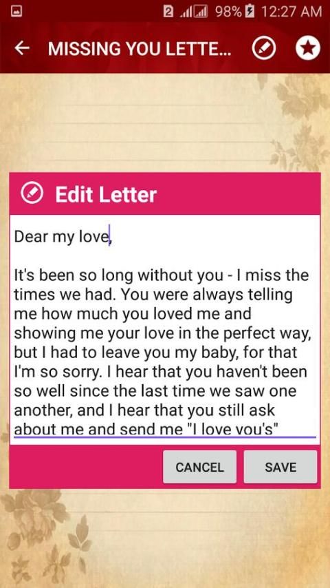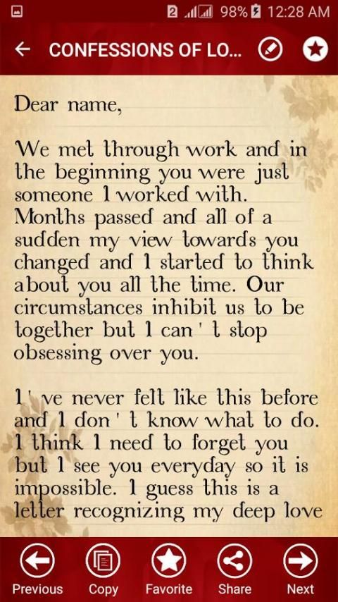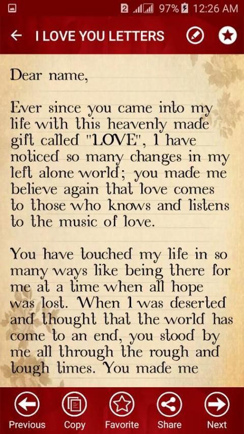 Dalam aplikasi ini Anda dapat menemukan koleksi (sekitar 500 +) surat cinta yang mengagumkan. Anda dapat mengirim langsung ke aplikasi sharing seperti Pesan, FB Messenger, imo, Viber, whatsapp, WeChat, line, tango dan banyak lagi. Anda juga dapat mengedit surat sebelum mengirim.