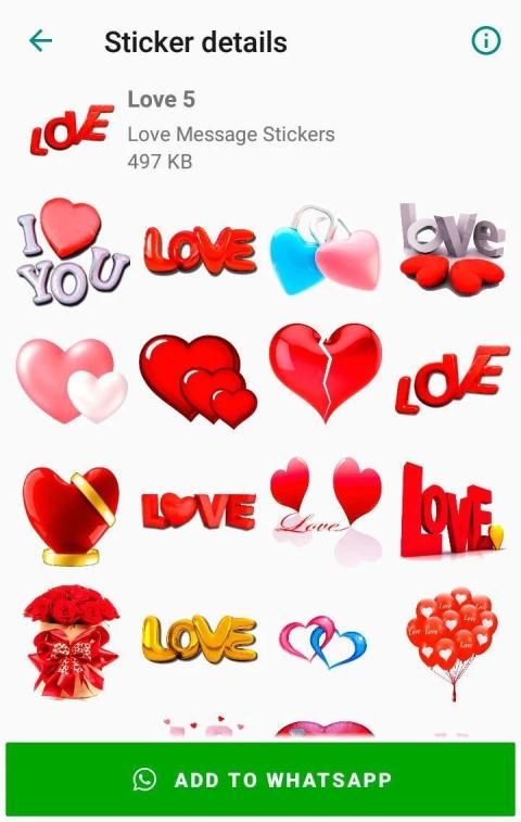 Use this Love Message Stickers for WhatsApp and Add New Stickers pack of: