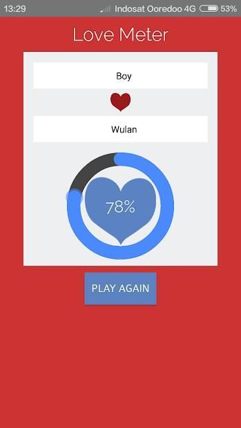 Aplikasi ini hanya permainan yang menyenangkan. Jangan lupa download kalkulator cinta ini. Selamat bersenang-senang dengan aplikasi ini.