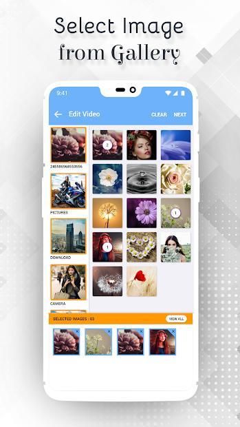 -> Select multiple photos from your album to create video. Add Pictures from gallery as many as you can