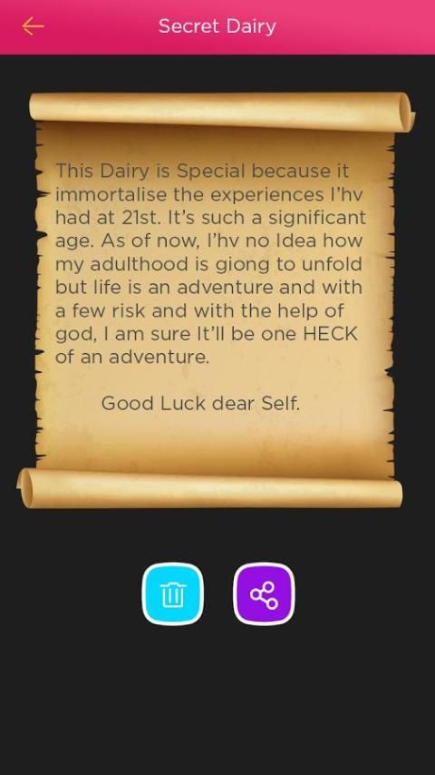 Sesuatu yang menarik hanya terjadi pada Anda, Anda memiliki naksir baru, Anda dan teman Anda hanya melakukan sesuatu yang menyenangkan, atau Anda ingin berbicara tentang emosi terdalam Anda, tetapi Anda ingin tetap pribadi? Dapatkan “buku harian rahasia dengan kode akses” dan menulis aktivitas sehari-hari Anda, pikiran dan perasaan, mengambil foto narsis di setiap episode kisah hidup Anda dan membuat kenangan dengan orang yang dicintai Anda yang akan berlangsung selama seumur hidup!
