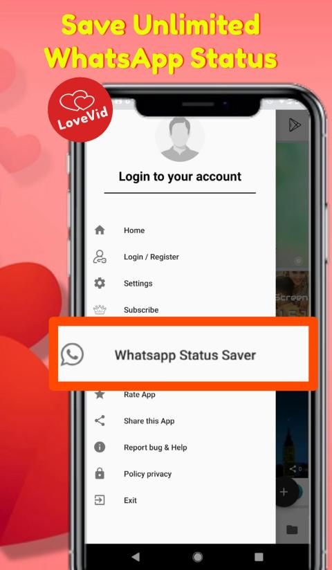 With LoveVid Status ,you can Save ,Download and Share WhatsApp Status Videos, Quotes, Shayaris, Wishes Videos to your friends. With LoveVid Status, you can also upload your own Status Videos, your favorite Status Videos,