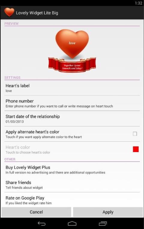 Jadi dengan bantuan mencintai widget Anda tidak akan pernah lupa jumlah waktu yang Anda habiskan bersama sejak pertemuan pertama Anda atau acara penting dalam hidup Anda, seperti pernikahan.