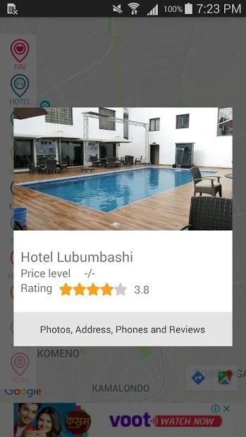 * Lubumbashi - Wiki shows famous Hotels, Restaurants, Health Centers and attractions based on the Google Map Ratings.