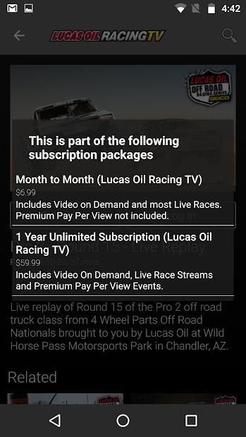 Various app bug fixes and improvements. Thanks for supporting Lucas Oil Racing TV!