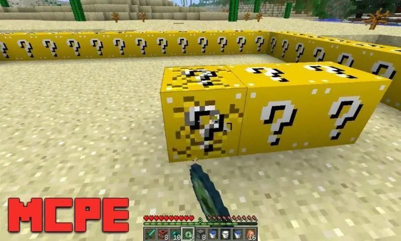 The Lucky Blocks Addon menambahkan elemen yang menarik untuk permainan. Kelihatannya sangat mirip blok tetapi sebenarnya adalah entitas yang dapat Anda bunuh. Setelah itu membunuh sesuatu yang acak akan terjadi. Jika Anda beruntung Anda mungkin mendapatkan banyak barang berharga tetapi kadang-kadang sesuatu yang jauh lebih buruk terjadi seperti pemijahan bos layu.