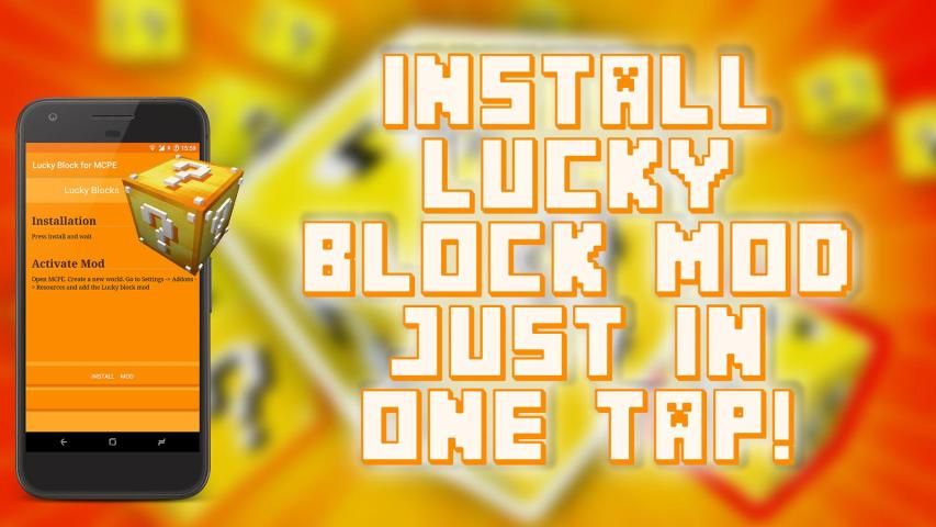 Blok mod beruntung adalah menarik tetapi berpotensi menghancurkan add-on untuk edisi saku Minecraft. Ia menambahkan blok baru ke permainan yang terlihat seperti '?' blok emas. Beruntung Blok mod menambahkan hanya satu item untuk Minecraft - Blok beruntung.